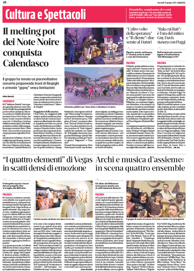 Redazionale su pagina cultura e spettacoli quotidiano “Libertà”.